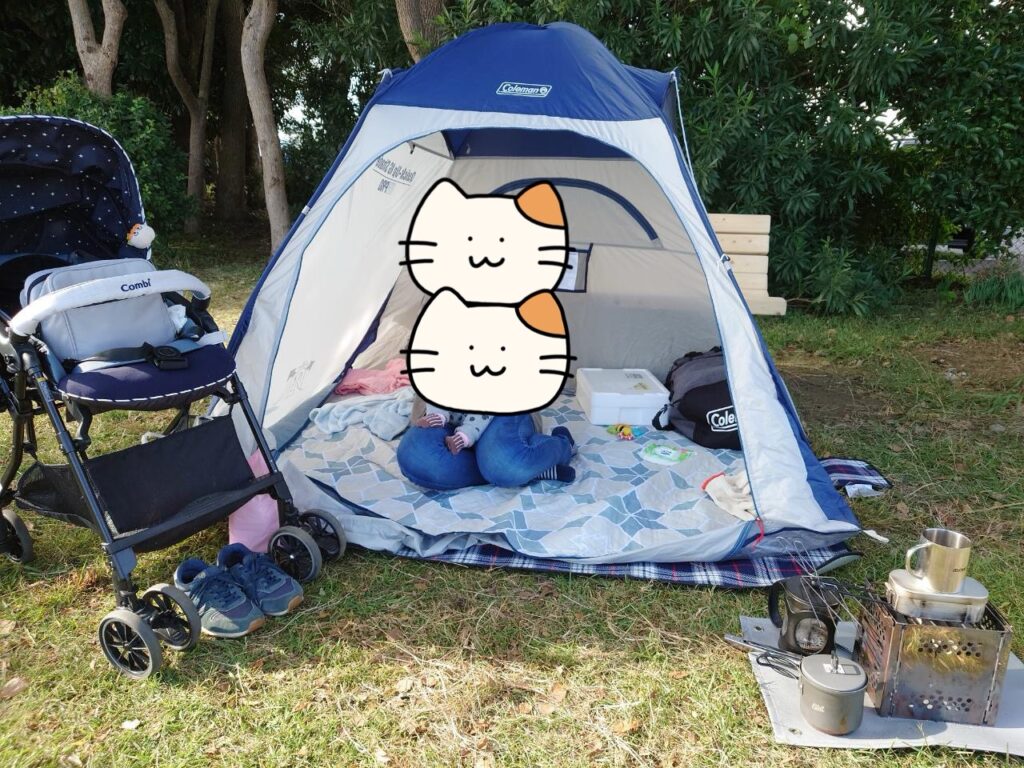こちらの公園は海上公園でも数少ないバーベキューができる公園です。私達は簡易テントとバーベキューコンロを持ってお出かけしました(上の子がまだあまり動かない時です)。