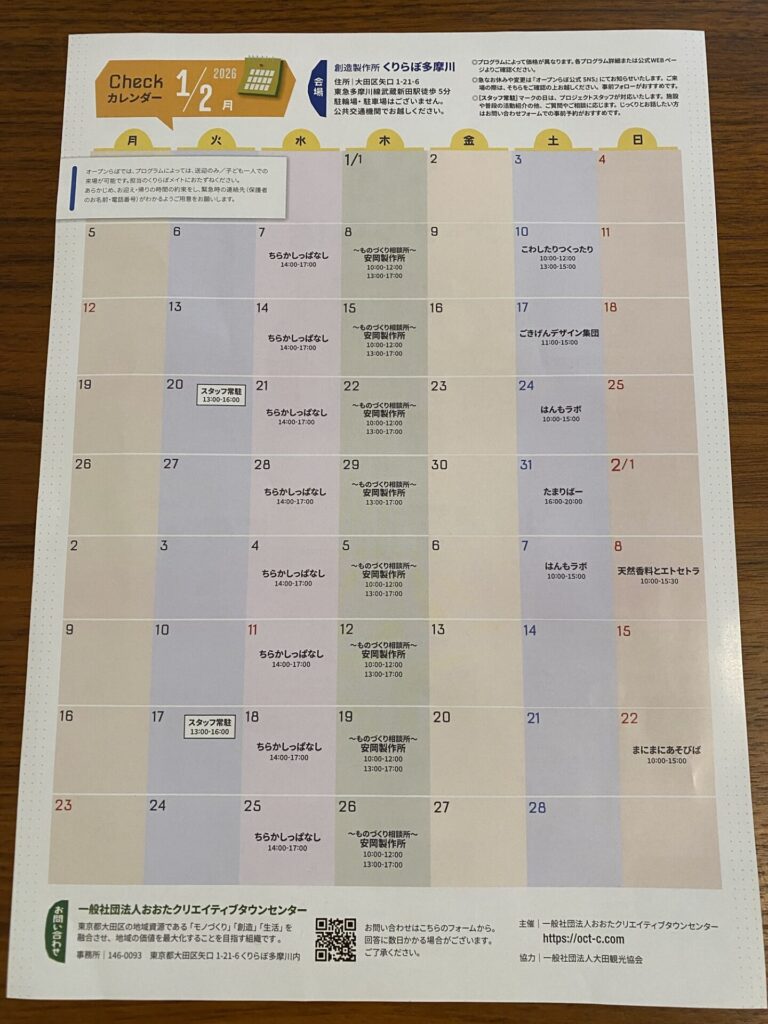 【矢口】つくるわくわく☆オープンらぼ1.2月スケジュール