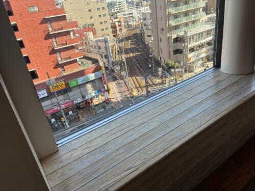 ここから池上線のホームを上から見下ろせて、電車が発着する様子がバッチリ見えるんです。