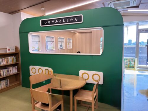 電車モチーフの可愛い空間に絵本や紙芝居がたくさん並んでいて、ちょっとした時間つぶしにぴったりでした。同じビルに無印やカルディも入っていて、お買い物ついでにふらっと寄れるのがうれしいポイントです。