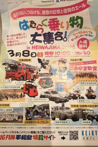 【平和島】3/8(日)入場無料!はたらく乗り物大集合!乗馬やトミカの展示も🎵
