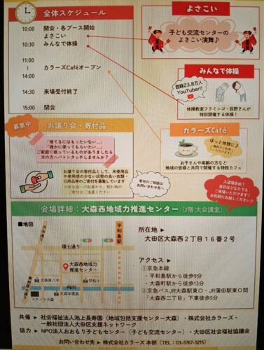 【大森西】お菓子プレゼントや無料おむつ配布も!地域交流イベント「いろどりフェスタ」開催! 3/21(土)