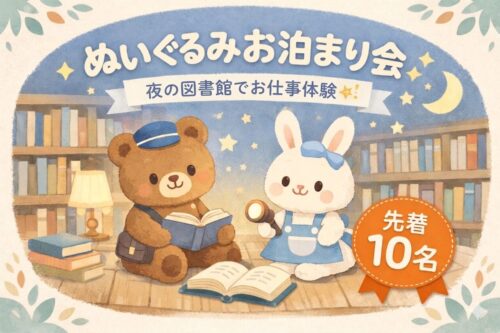 お気に入りのぬいぐるみを図書館に預けると、夜の図書館でおしごと体験や冒険をして過ごすという、とってもユニークなイベントなんです。しかも後日お迎えに行くと、ぬいぐるみたちがどんなふうに過ごしたのか写真で見せてもらえるそうで、その様子が絶対かわいい予感…!