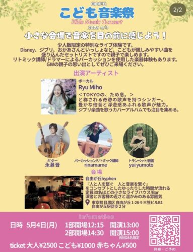 自由が丘にて0歳から参加が可能な音楽イベントが開催されます。
