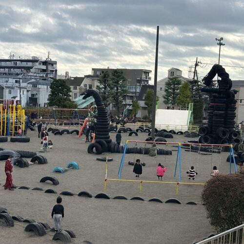 「タイヤ公園」タイヤ遊具や滑り台が楽しい!【西六郷】