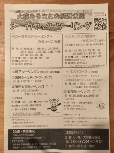 【大森町・平和島】2/7-8, 3/20-22シーカヤック・ツーリングイベント@大森ふるさとの浜辺公園