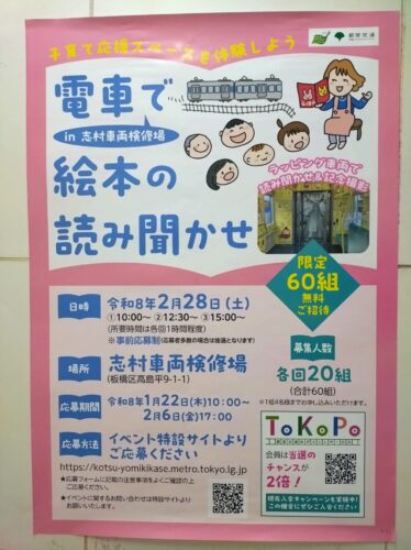絵本読み聞かせ 【都営地下鉄志村車両検修場】「子育て応援スペース」で絵本の読み聞かせ。2月28日 西馬込ママ 2026年02月3日 30 views 【大森】2/5開催!大田文化の森「おはなしのへや」|絵本・紙芝居を親子で楽しもう おすみさん 2026年01月19日 52 views 12月20日クリスマスおはなし会【大鳥居】 りん 2025年12月15日 118 views TOPページに戻る